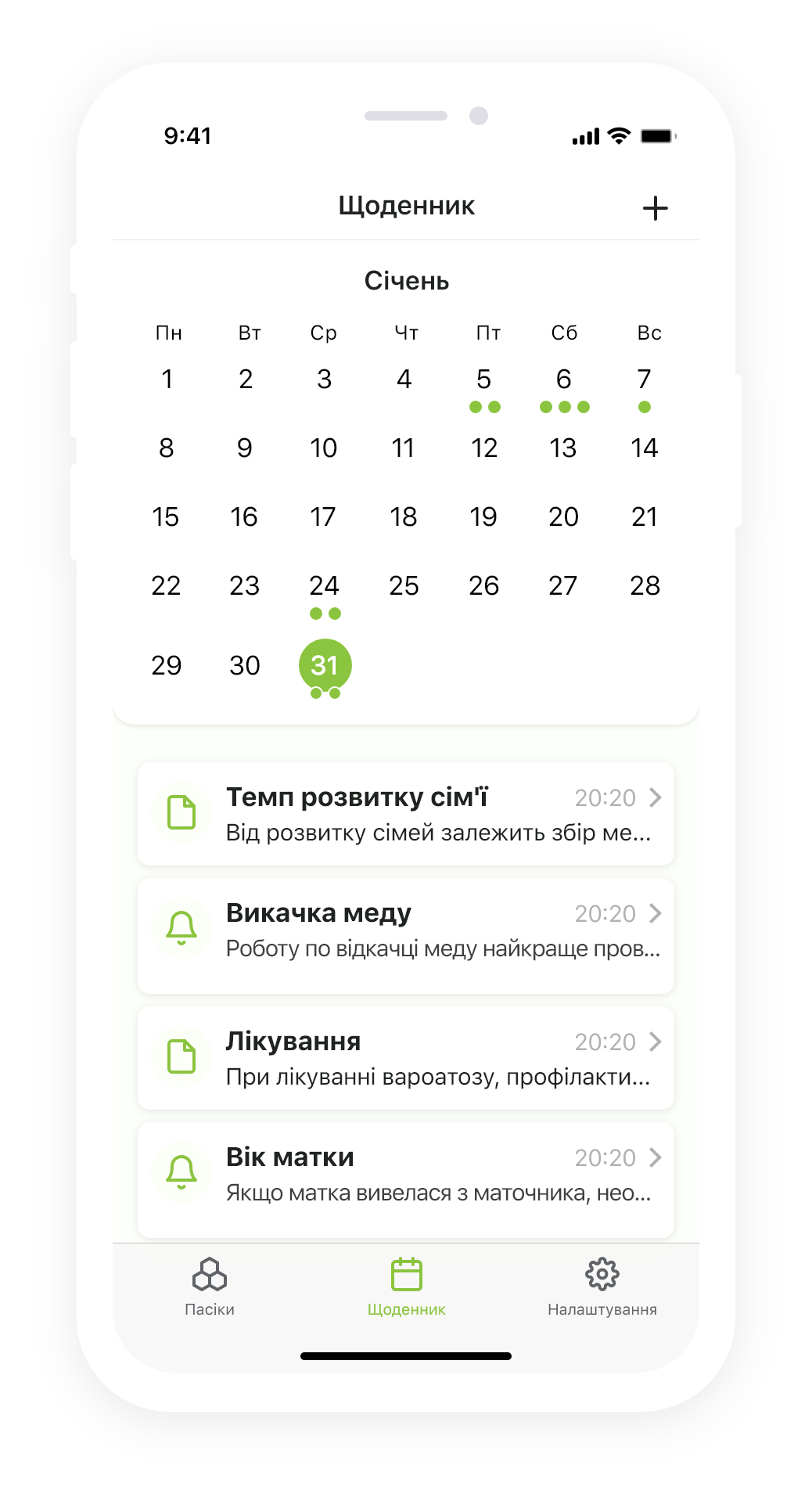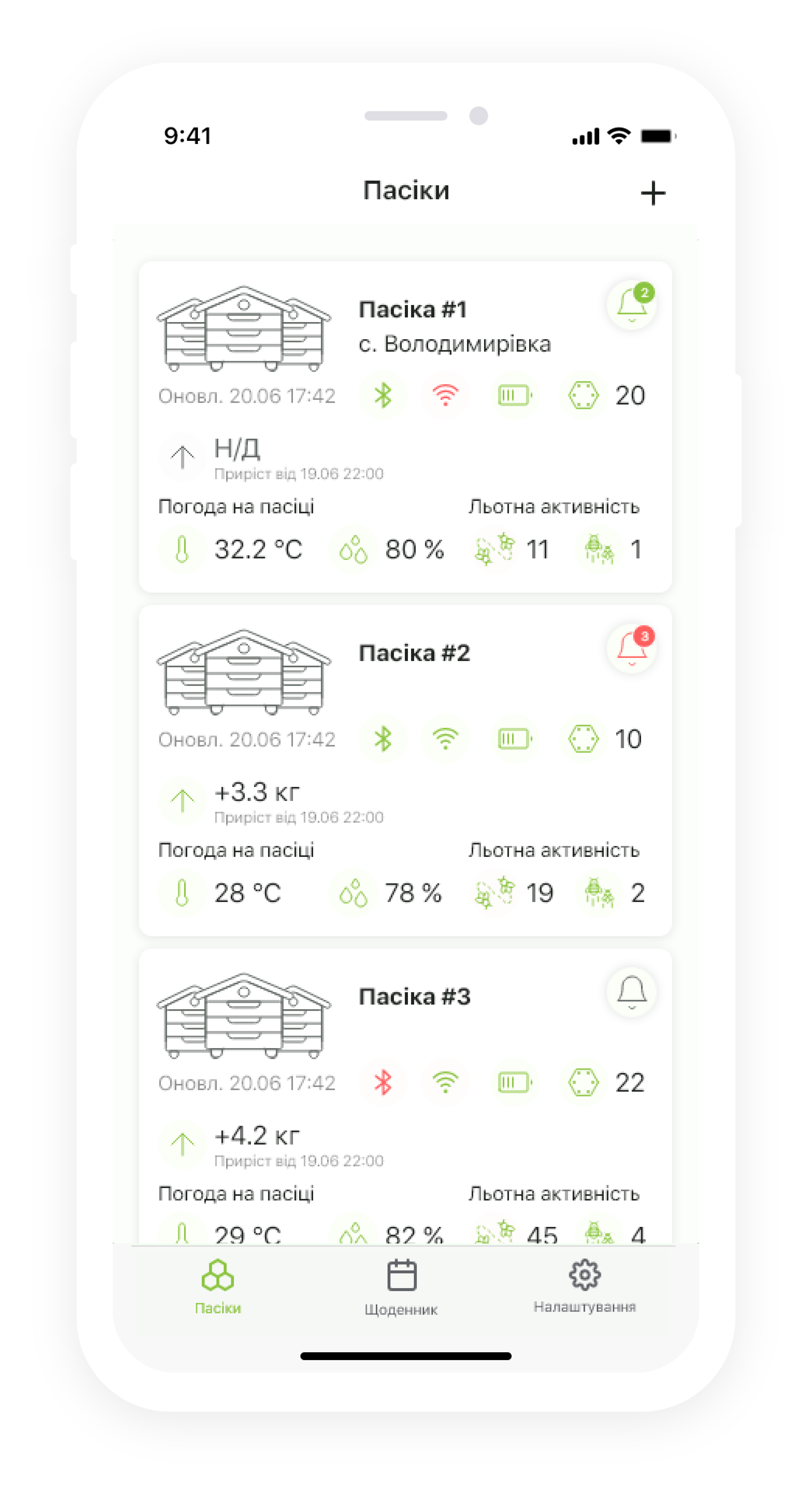 Контролюйте стан кожного вулика, ведіть облік всіх дій, отримуйте миттєві повідомлення в разі екстрених ситуацій